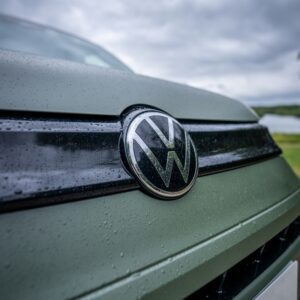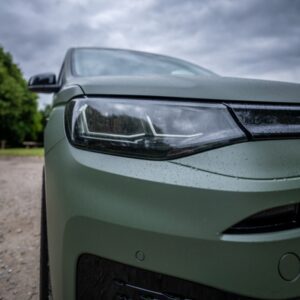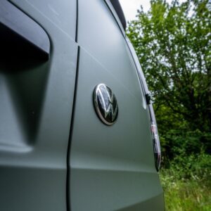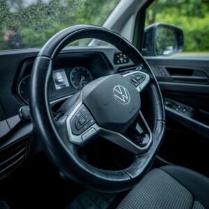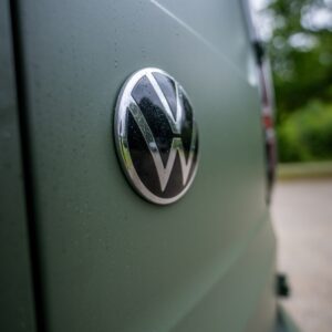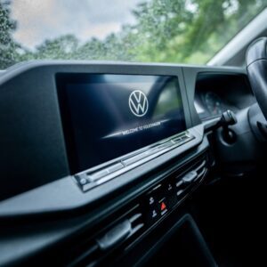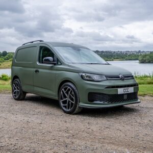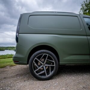 This vehicle is wrapped in Satin Military Green and features an Automatic DSG gearbox, 19-inch alloy wheels, roof bars, a front splitter, and a roof spoiler. Inside the cab, it offers manual air conditioning, electronically controlled heating, a leather multi-function steering wheel, height-adjustable front seats with armrests, power lumbar support for the driver, and rubber floor covering for durability. Additional storage is available under the front seats, with a full-height steel bulkhead separating the load area. Technology highlights include the Discover Media Navigation System, DAB digital radio, Bluetooth mobile phone interface, a multi-function display, and cruise control with speed limiter. Safety features are extensive, including front driver and passenger airbags (with deactivation), 3-point seat belts with pretensioners and height adjustment, ABS, Brake Assist System (BAS), Electronic Brakeforce Distribution (EBD), Electronic Stability Programme (ESP), Traction Control System (TCS), Engine Drag Torque Control (MSR), Autonomous Emergency Braking with pedestrian monitoring, automatic post-collision braking, and automatic hazard lights during emergency braking. Additional security is provided by an alarm with interior monitoring, tow-away protection, locking wheel bolts, remote central locking with two keys, and an electronic engine immobiliser. The exterior boasts body-coloured bumpers and handles, black painted mirrors, a silver sliding door rail, twin halogen headlights, separate daytime running lights with automatic headlight control, LED rear combination lights, a heat-insulating and heated windscreen, and electrically adjustable, heated, folding mirrors. Convenience features include front and rear parking sensors, a tyre mobility kit in lieu of a spare wheel, six load lashing rings, a single near-side sliding door, rear wing doors without window apertures, roof rail preparation, a driver alert system, an electronic parking brake with auto-hold, and the Lights and Vision package. Also included are an emergency call system (eCall), a sun visor with mirror and airbag label for the passenger.