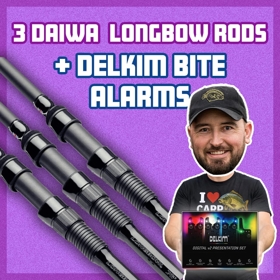 Main Prize: 3x Daiwa Longbow X45 Rods & Basia Reels + Delkim Bite Alarms