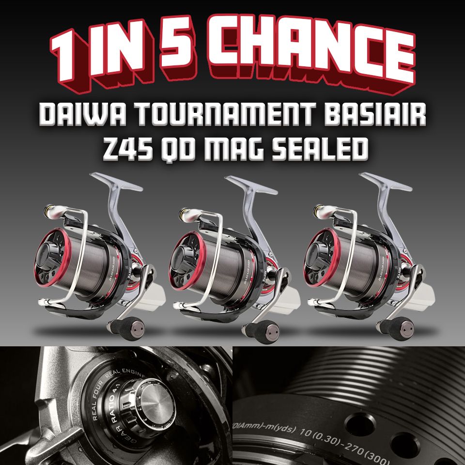 3x Daiwa Tournament Basiair Z45 Mag Sealed Reels – 1 IN 5 CHANCE TO WIN!