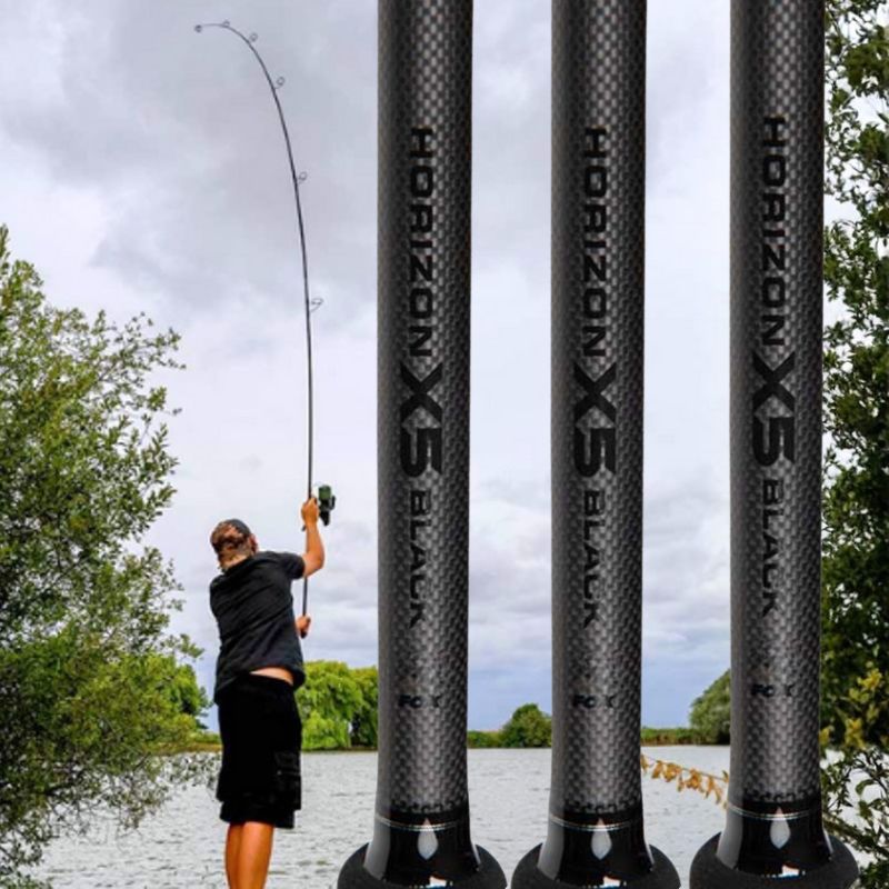 Skip to contentIntroducing an updated and improved version of the incredible Horizon X5-S rods, the X5 Black rods use cutting edge carbon technology for a stronger, lighter, thinner and more powerful blank. Using several multidirectional layers of thinner carbon cloth with nanofibre technology that are electro bonded together during the curing process. All push over joints feature additional carbon reinforcement. The X5 Black blanks have superior recovery to improve distance and accuracy in casting whilst still retaining a superb playing action. Now finished with matt black guides and reel seat, with full Japanese shrink wrap and an EVA comfort fore-grip, these rods are in a class of their own!