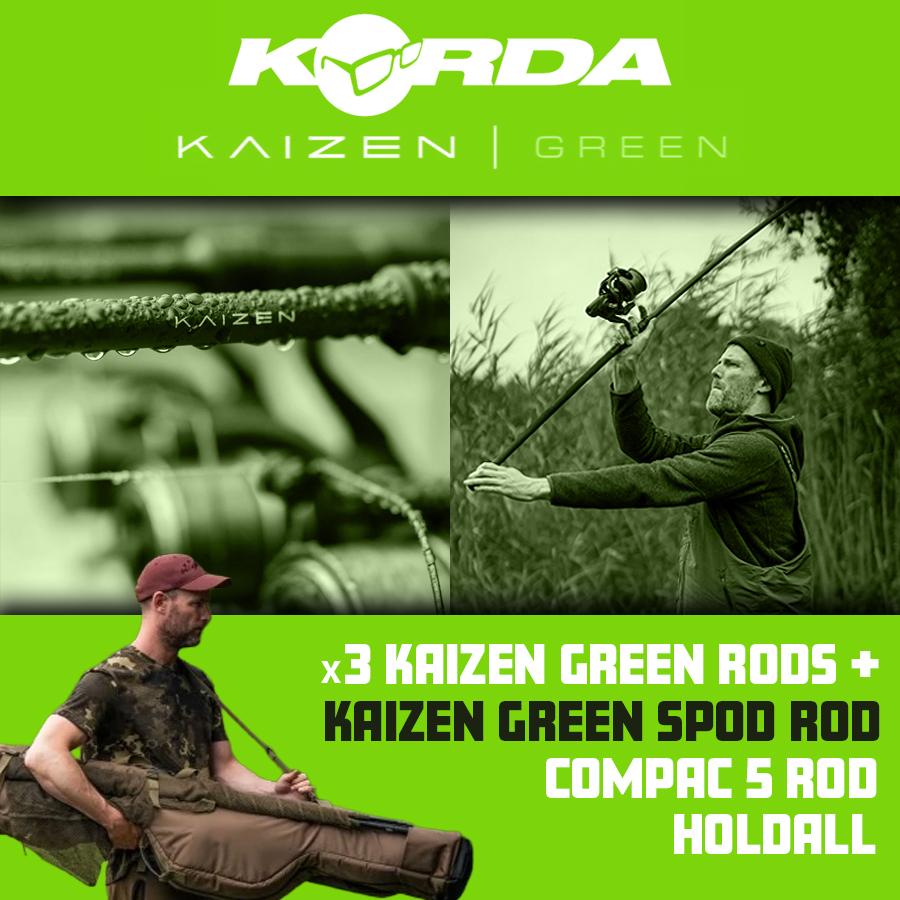 WIN 3x Korda Kaizen Green 12ft 3.5lb Rods + Korda Kaizen Green Spod Rod + Korda Compac 5 Rod Divide Holdall for just 1p!