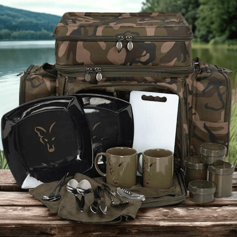 Mugs and plates are all stylishly branded with subtle yet striking Fox logos, and the cooler is presented in durable DPM polyester, made to a rugged and robust 500Denier standard, and fitted with heavy duty zips.