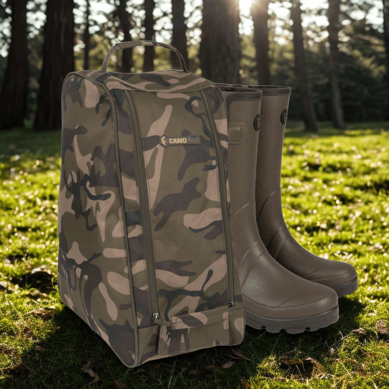 The Fox Camolite Boot and Wader Bag is the perfect storage luggage for your boots and waders. With easy access via the double zips, and an external mesh pocket for storing any accessories you want to keep to hand.