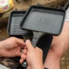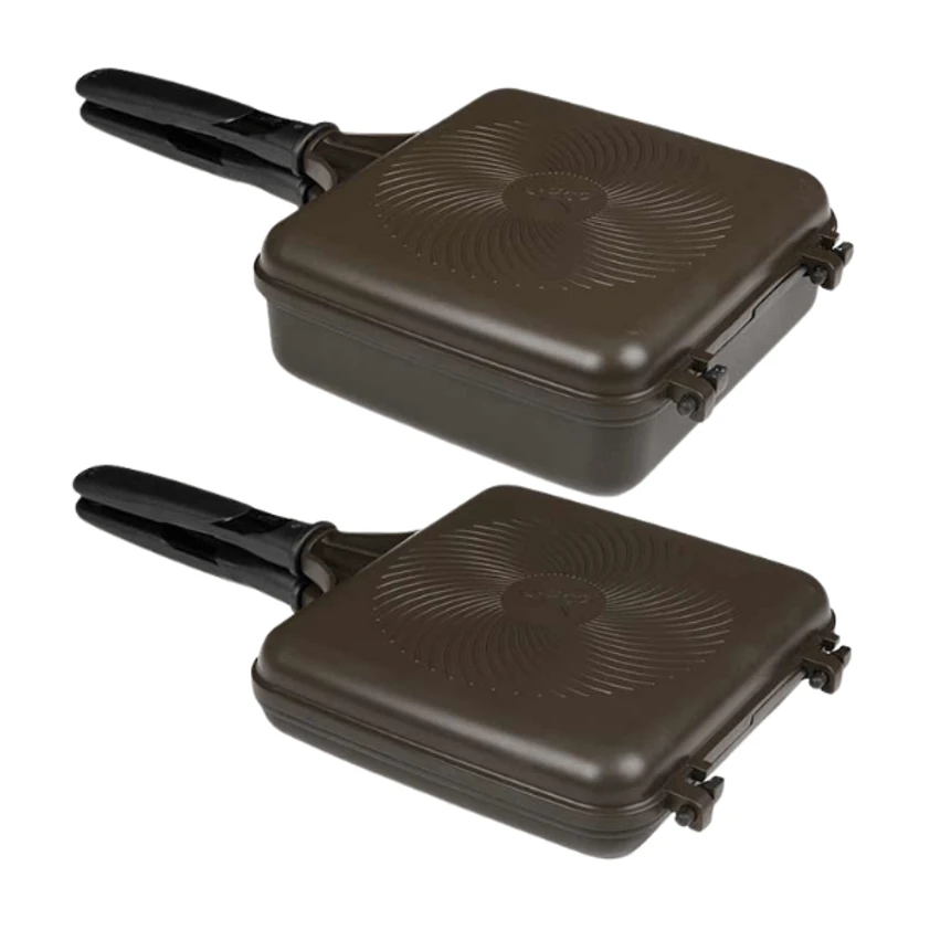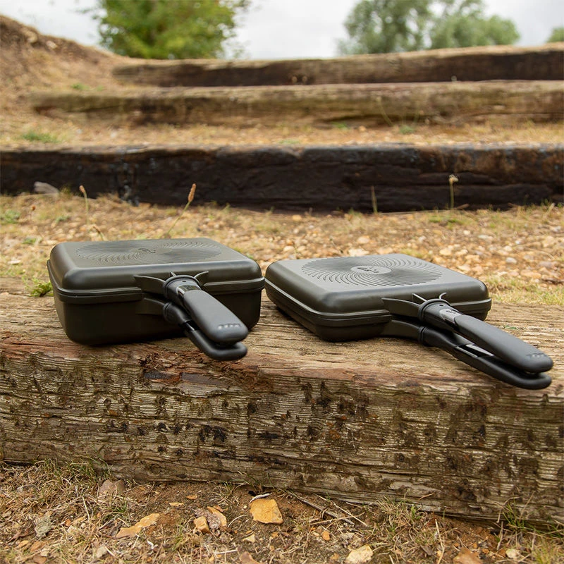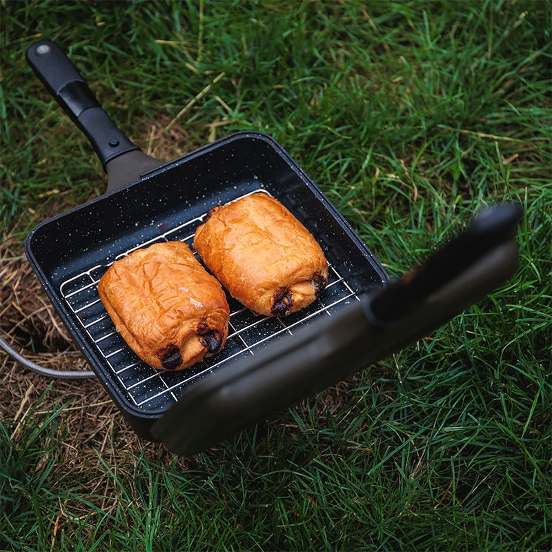 Fox Cookware Multi-Pans, die-cast aluminium pans with a high temperature nonstick marble cooking surface. Hinged and removable so each pan can be used independently. Supplied with a stainless steel wire rack to prevent pies, pastries, pizza’s etc from direct contact with the pan surface, reducing burning. Supplied in protective neoprene sleeve and for use on gas stoves only.
