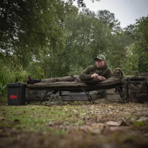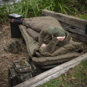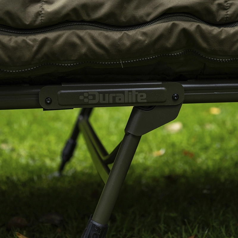 The Duralite Bedchair Sleep System offers a premium all-in-one design that combines a lightweight bed and a versatile sleeping bag for year-round comfort. This system features a flat Duralite 6-Leg frame with full in-frame lumbar support and a dual-layer 30mm mattress for optimal comfort. The zipped-in Ventec All Season Sleeping Bag can easily transition from a 5-season to a 3-season setup by removing the reversible thermal inner bag. Designed for convenience, the bed folds neatly with the sleeping bag attached, while its innovative leg system ensures maximum support without sacrificing weight savings. Perfect for anglers seeking comfort, durability, and versatility, the Duralite Bedchair delivers comfort in all seasons.