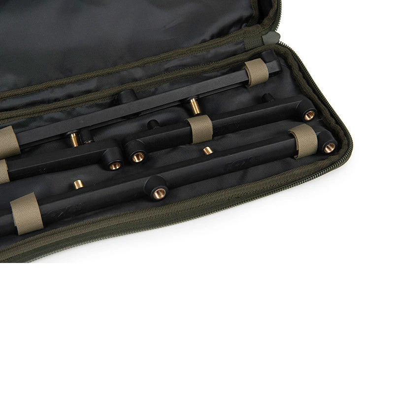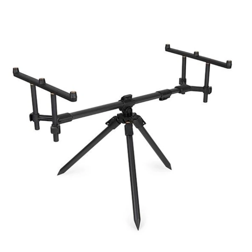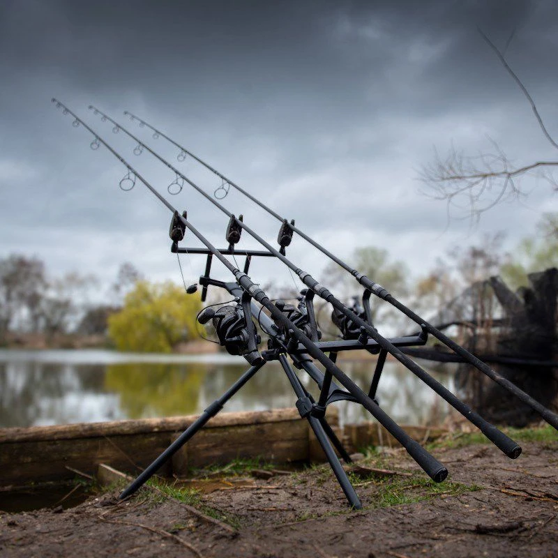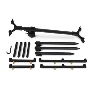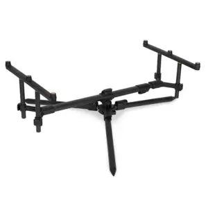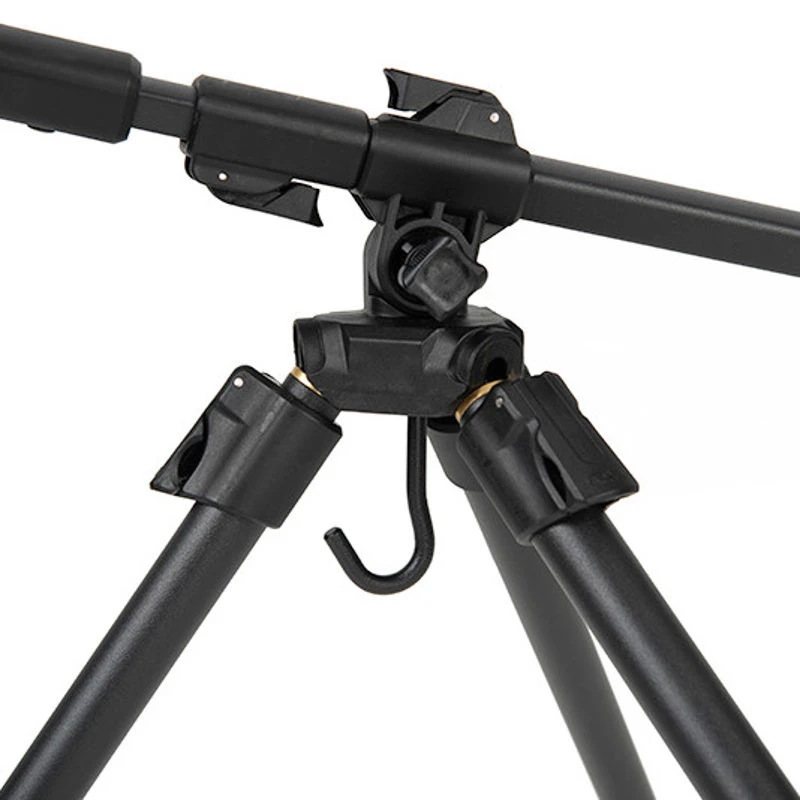 The Fox EOS 2 & 3 Rod Tripod comes supplied with a set of both two, and three rod buzzer bars. With a study adjustable tripod that can be tilted through nine different settings with a thumb screw. The main pod bar allows you to point the rod tips up high, or low to the water. Ideal for coping with different venues requiring differing approaches. The legs are adjustable in length and there’s also a crew in hook that attaches to the central boss of the tripod so you can add weight, or peg it down for extra stability.