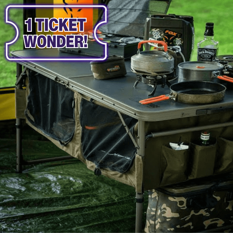 Give yourself that extra space and room to cook and prepare your meals on the bank with the Fox Session Table with Storage. Perfect for longer stays, and when you’re expecting friends, great for outside catering, or placing inside your social shelter. Beneath the table itself there are two separate storage spaces with a dividing shelf in each. Both feature zip up mozzie mesh doors that can be tied up and left open if you wish. On the opposite ends there’s a series of pouches for you to sit utensils and cooking tools so you can keep them close to hand. When you’re ready to go home, these fold up completely flat for transport and come in their own zip up storage bag.