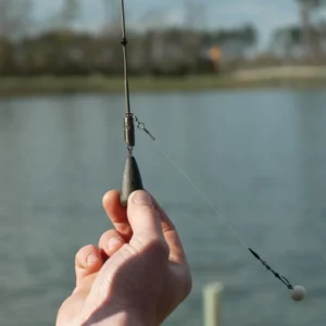 With a conventional helicopter rig having the lead fixed to the end of the leader while fishing in weed potentially causing lots of problems, particularly with lost fish.