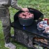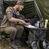 The upgraded and improved Nash Bank Life Cook Station. With an improved jointed folding frame, and now in camo. They give a wind protected cooking area and work surface, plus under table storage all of which packs away flat for transport. The main table goes up super quick, with twist lock legs ensuring you can get them perfectly level. A three way windshield then locks into place on top giving enough room for a couple of small stoves. The under table storage consists of two zip up shelves, manufactured from tough 600D fabric.