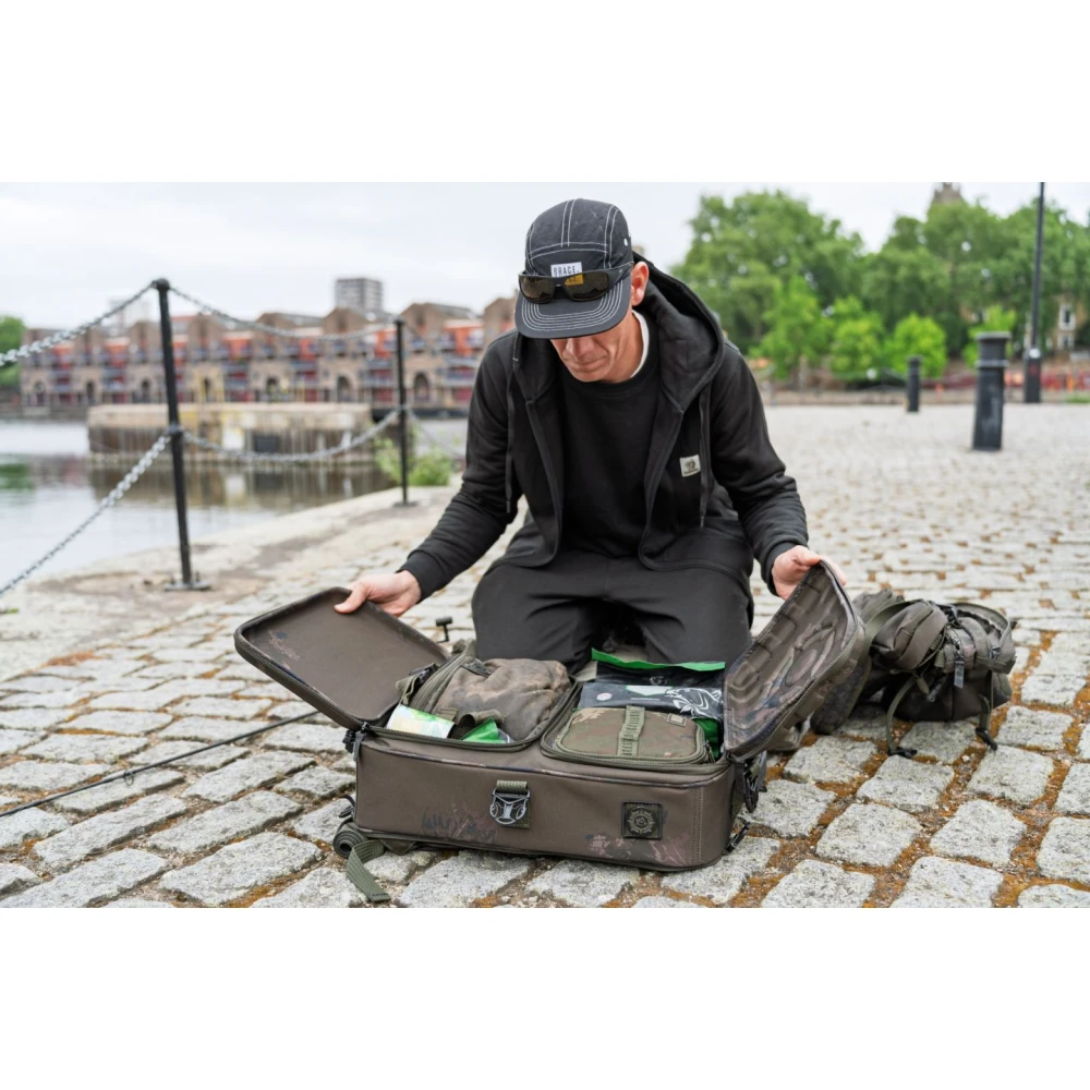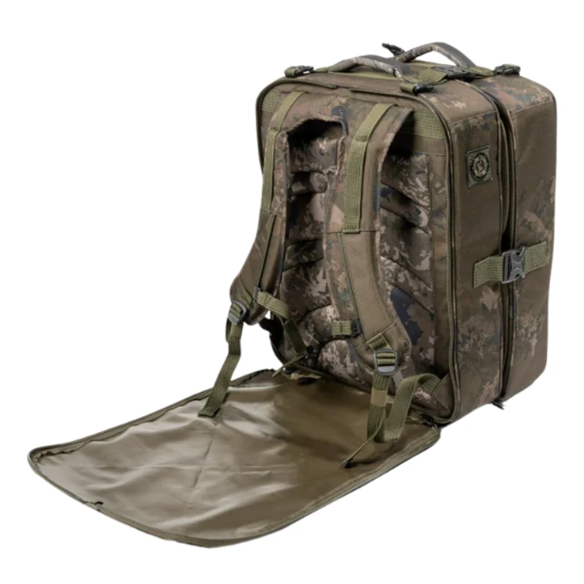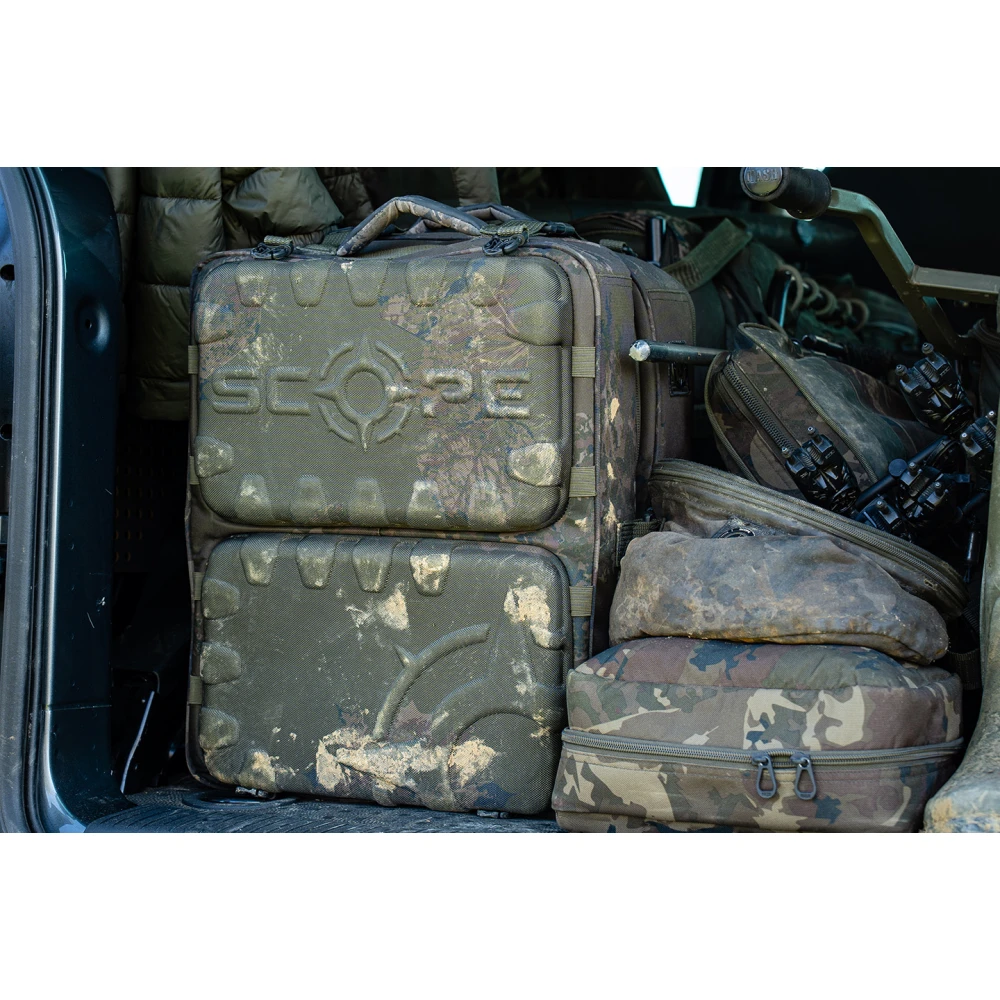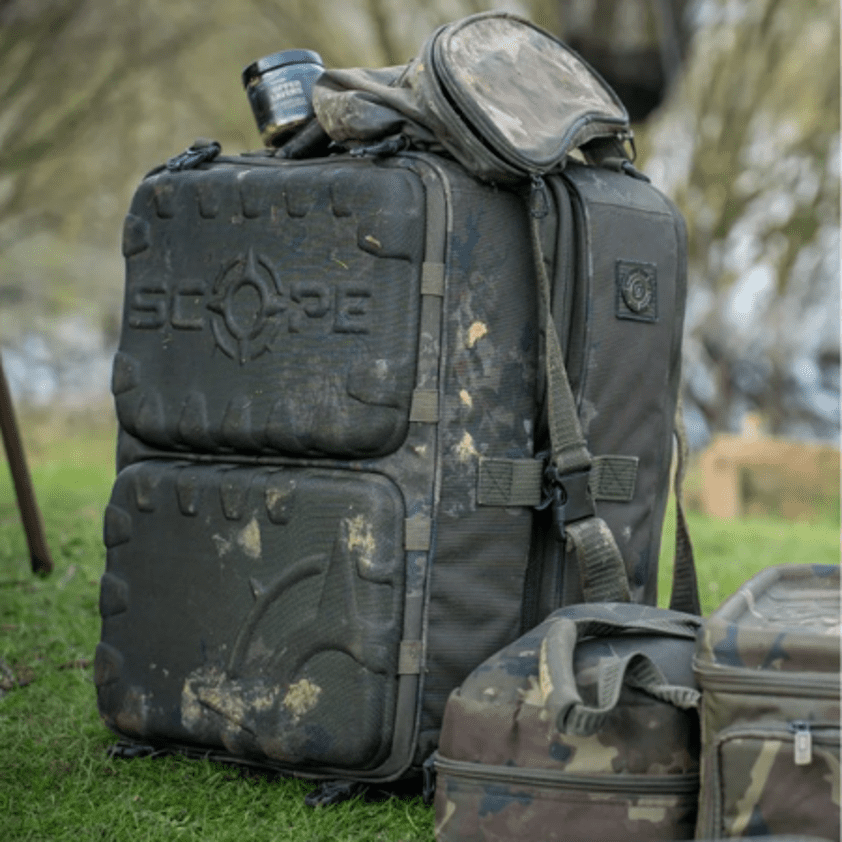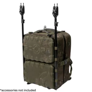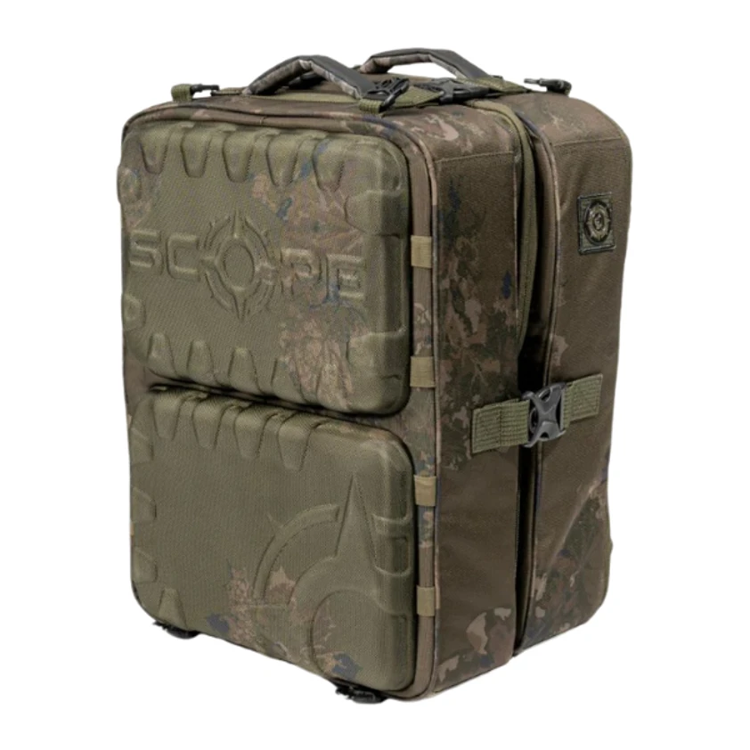 Skip to contentThe Nash Scope Ops Deploy Rucksack is an ultra versatile tackle transport solution with two fold out sections offering four independently zipped compartments. Allowing for tackle, clothing and accessories to be divided but all accessible at the same time. With a rigid hi protect design with armoured high density weave material to resist damage along with premium fittings and Durable Water Repellent coating. With twin stiffened EVA compartment lids to protect contents from impact and base pocket EVA front detaches to use independently as a bivvy tray. Two sets of bankstick elastics to allow alarms to be supported without needing a pod over concrete or difficult terrain. Additional heavy duty clips at the top and bottom for compatibility with Scope OPS Expansion Packs and Scope OPS Auto Inflate Unhooking Mats.