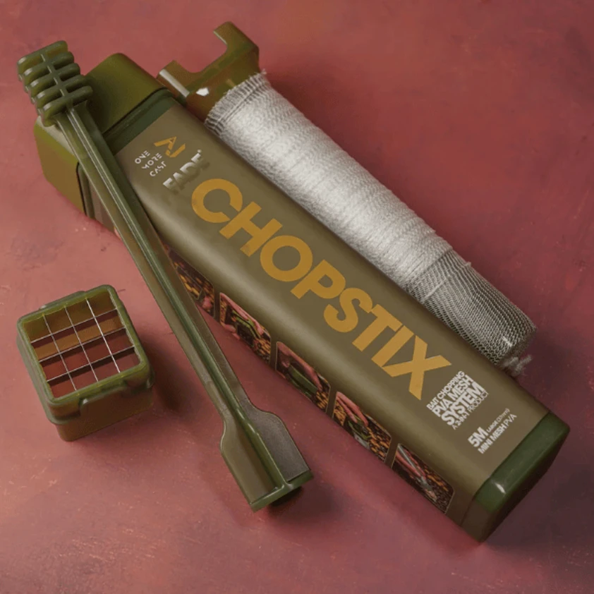 The FADE CHOPSTIX innovative 2 in 1 PVA Mesh system not only offers you the ability to make a standard PVA Mesh Bag or Stick but now with the unique removable Cutting Grid & Lid you are able to quickly Chop multiple Boilies, Luncheon Meat, Tiger Nuts etc into your PVA Bag before adding other groundbait, pellets and/or smaller food items.