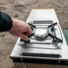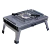 RidgeMonkey Grilla Cook Station Single Hob, Featuring a single burner, this hybrid between the Quad Connect Pro Stove and the Grilla BBQ provides a portable, sturdy and simple solution for comfortable mobile cooking. The low-profile folding design features a thermally robust and easy-to-clean stainless steel construction, which packs away neatly into a carry bag, allowing you to conveniently master the challenges of outdoor cooking.