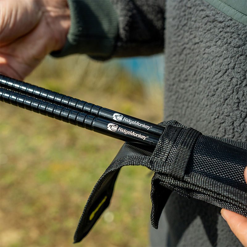 Ridge Monkey Nite Glo Wrap Sticks feature self-illuminating Nite Glo caps, a Hi-Vis measuring cord and 4 individual Nite Glo marker spikes, you can easily locate the sticks and accurately ‘wrap up’ multiple rods, even in low-light conditions, without the need for external lighting or isotopes. The anodised aluminium body features line-friendly retaining grooves, offering plenty of secure locations to evenly and neatly ‘wrap’ your line around without slipping. Precision-machined with a smooth profile, the line freely peels back off again once wound in. Supplied in a hardwearing Polyester carry pouch with internal mesh pocket.