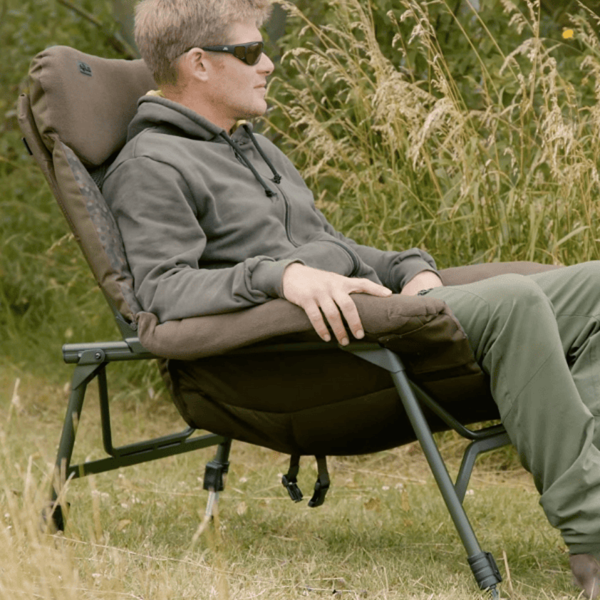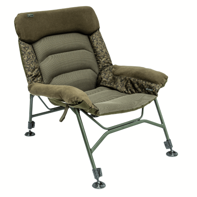 SolarCam embellishes a brand new ergonomic mattress to anglers. Its supportive yet soft ‘cup’ is anchored over the arm rests, so they’re sumptuously padded as well. Plus, there’s no draughts around your lower back, a huge benefit in the colder months.