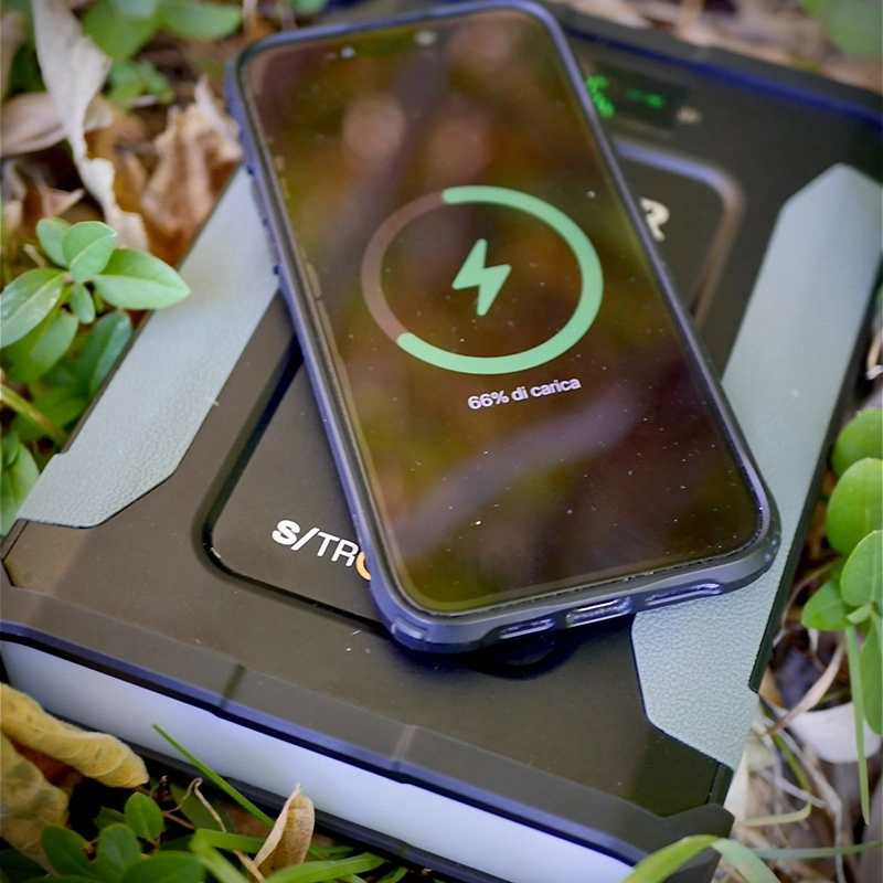 The Solar S-Tron Powerpack 48K offers fast USB-C input/output up to 60W, ensuring quick and efficient charging. It also includes 12V/15A cigarette lighter sockets, a DC12-24V port, and 15W Mag-Loc wireless charging, making it perfect for powering up your electronics, lighting, and more. The digital LED display keeps you informed of the remaining power, and the diffused white LED light offers handy illumination when you need it. Built to endure, the S-Tron 48k Power Pack features a durable design that can manage the rugged conditions of outdoor adventures. It includes 1 x cigarette socket, 1 x USB-A, 2 x USB-C, 1 x DC port, and wireless charging capabilities, giving you multiple options to charge multiple devices simultaneously.
