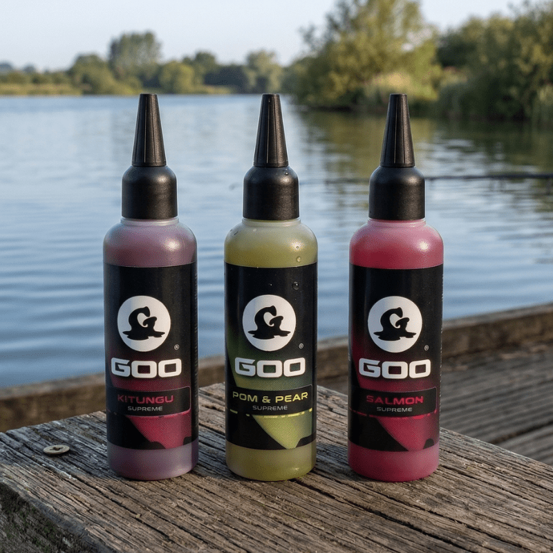 This classic yellow Goo has a very pleasant, yet sharp smell of apple and pear. The perfect glaze for those who favour that irresistible fruity yellow hook bait. Fans of Isotonic and Pango will absolutely adore the Pom & Pear. There’s a strong essence of pear drops that will work incredibly hard all year round. Perfect used on its own but would also work extremely well mixed as a Goo combo; Pineapple, Isotonic and Pango would make an ideal cocktail mixer. Pom and Pear Supreme has a thin consistency that is designed to penetrate deep into the core of your bait. Coating sparingly, over multiple applications works best and the more coats you apply the greater the attraction.