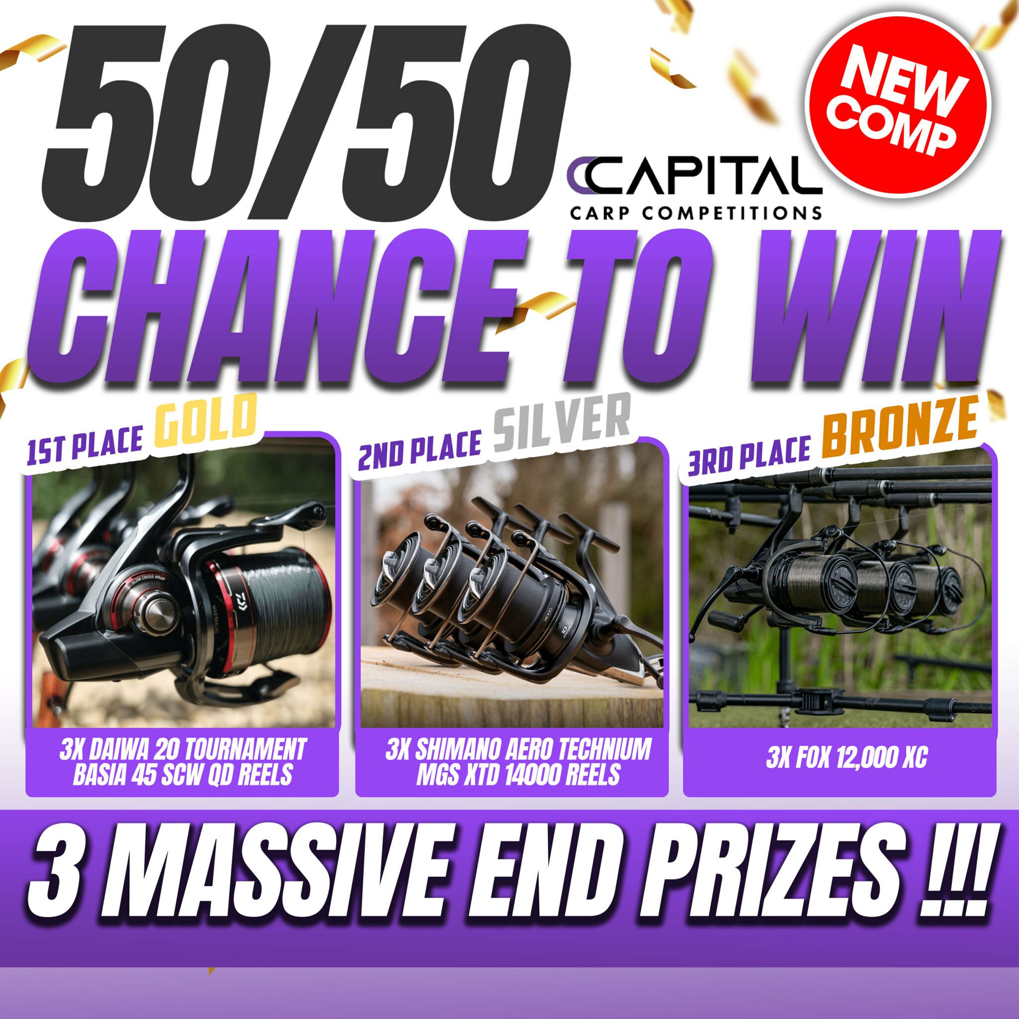 1st Place Prize – 3x Daiwa 20 Tournament Basia 45 SCW QD Reels or £1,600 Cash