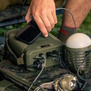 Skip to contentThe Trakker 96k Power Pack features two USB-A (QC3.0) quick charge ports, USB-C Power Delivery (PD), and 10W wireless fast charging, this versatile unit is the perfect power solution for all your needs. You can easily charge laptops, tablets, cameras, drones, gimbals, head torches, and much more. In addition to these common outputs, there are two 12V car sockets ideal for powering boat pumps, lighting, fans, echo sounders, and even travel blankets. Furthermore, there is a DC output for charging 12V-24V DC devices such as laptops.