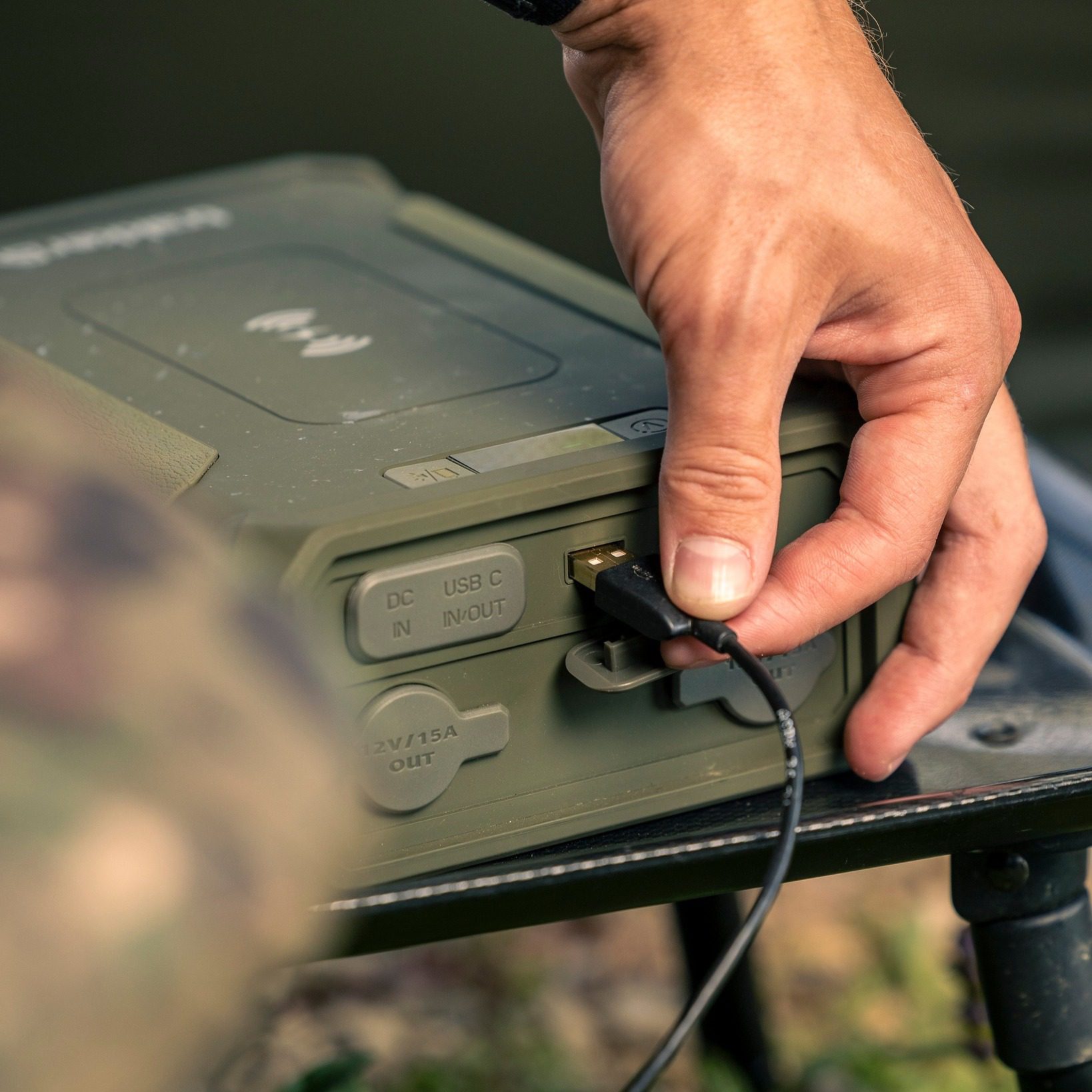 The Trakker 96k Power Pack features two USB-A (QC3.0) quick charge ports, USB-C Power Delivery (PD), and 10W wireless fast charging, this versatile unit is the perfect power solution for all your needs. You can easily charge laptops, tablets, cameras, drones, gimbals, head torches, and much more. In addition to these common outputs, there are two 12V car sockets ideal for powering boat pumps, lighting, fans, echo sounders, and even travel blankets. Furthermore, there is a DC output for charging 12V-24V DC devices such as laptops.