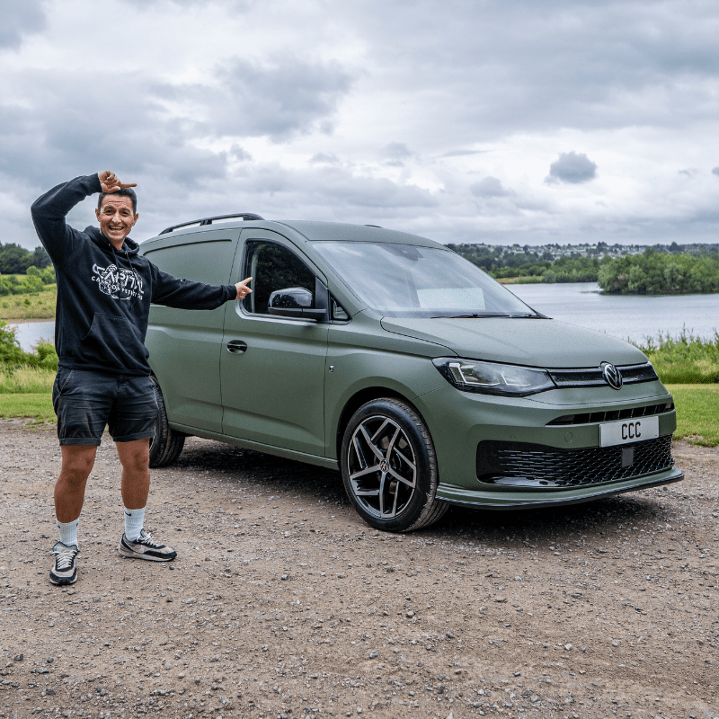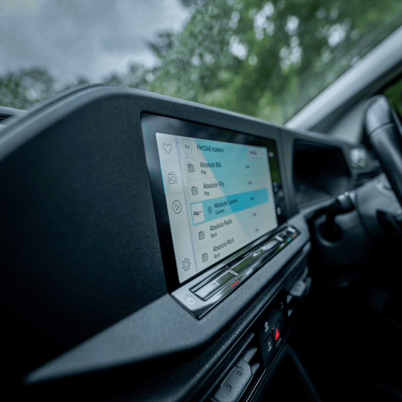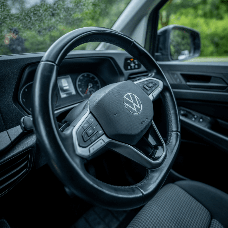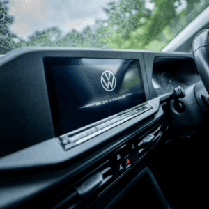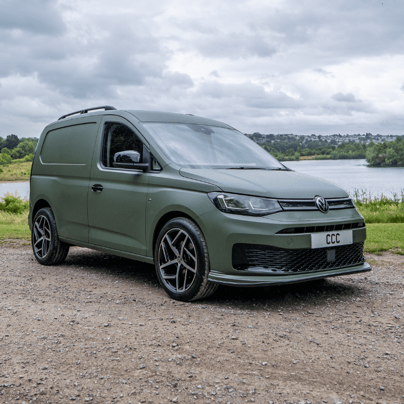 This vehicle is wrapped in Satin Military Green and features an Automatic DSG gearbox, 19-inch alloy wheels, roof bars, a front splitter, and a roof spoiler for a bold and aggressive stance. Inside the cab, it offers manual air conditioning, electronically controlled heating, a leather multi-function steering wheel, height-adjustable front seats with armrests, power lumbar support for the driver, a lockable illuminated glovebox, and rubber floor covering for durability. Additional storage is available under the front seats, with a full-height steel bulkhead separating the load area. Technology highlights include the Discover Media Navigation System, DAB digital radio, Bluetooth mobile phone interface, a multi-function display, and cruise control with speed limiter. Safety features are extensive, including front driver and passenger airbags (with deactivation), 3-point seat belts with pretensioners and height adjustment, ABS, Brake Assist System (BAS), Electronic Brakeforce Distribution (EBD), Electronic Stability Programme (ESP), Traction Control System (TCS), Engine Drag Torque Control (MSR), Autonomous Emergency Braking with pedestrian monitoring, automatic post-collision braking, and automatic hazard lights during emergency braking. Additional security is provided by an alarm with interior monitoring, tow-away protection, locking wheel bolts, remote central locking with two keys, and an electronic engine immobiliser. The exterior boasts body-coloured bumpers and handles, black painted mirrors, a silver sliding door rail, H7 twin halogen headlights, separate daytime running lights with automatic headlight control, LED rear combination lights, a heat-insulating and heated windscreen, and electrically adjustable, heated, folding mirrors. Convenience features include front and rear parking sensors, a tyre mobility kit in lieu of a spare wheel, six load lashing rings, a single near-side sliding door, rear wing doors without window apertures, roof rail preparation, an adjustable steering column (reach and rake), a driver alert system, an electronic parking brake with auto-hold, and the Lights and Vision package. Also included are an emergency call system (eCall), a sun visor with mirror and airbag label for the passenger, and variable intermittent wipers with wash-wipe.