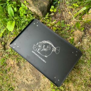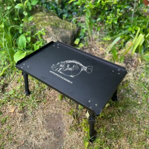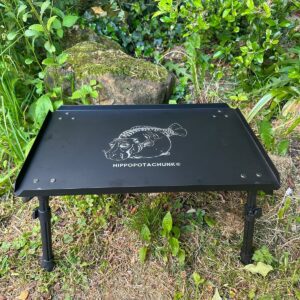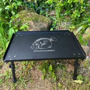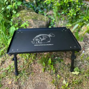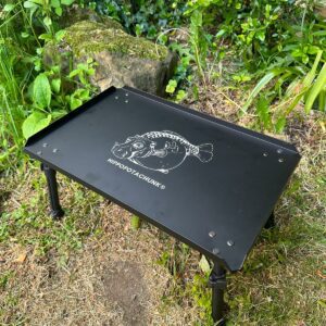 This study bivvy table with extending legs is compact when packed down and laser etched.
