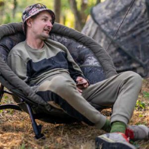 The famous Indulgence Moon Chair now with the addition of full size swivel mud feet for soft ground and to protect groundsheets, with one touch leg adjustment for uneven banks.