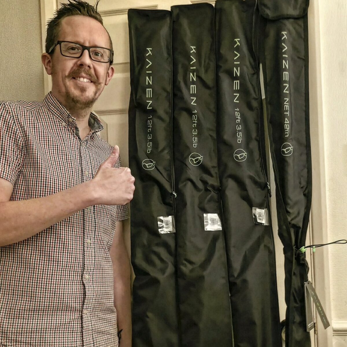 QUICK 24 HOUR – 3x Korda Kaizen Green 12ft 3.5lb Rods + Landing Net – AUTO DRAW